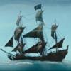 На самой верхушке мачты реет огромный чёрный флаг со скрещёнными костями и